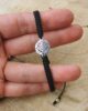 Bransoletka Rozetka Srebrna czarny sznurek